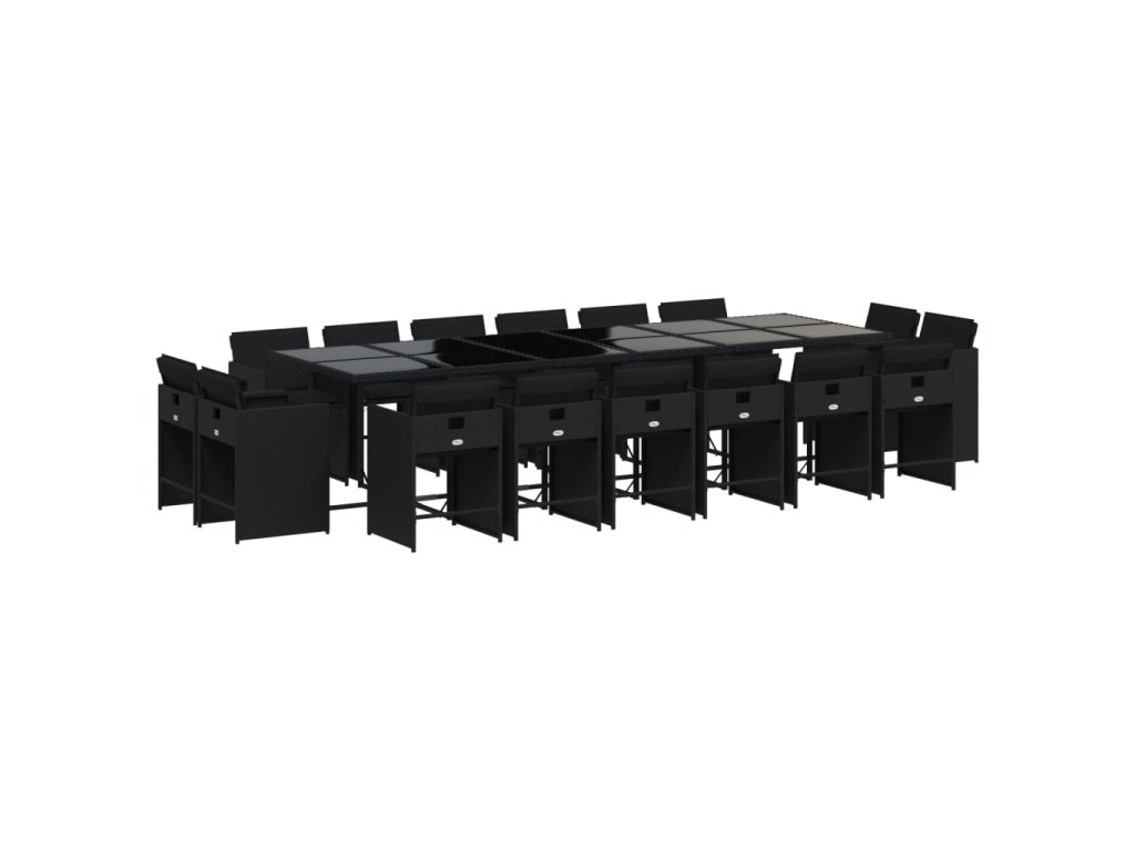 17dílný zahradní jídelní set s poduškami černý polyratan 3278010