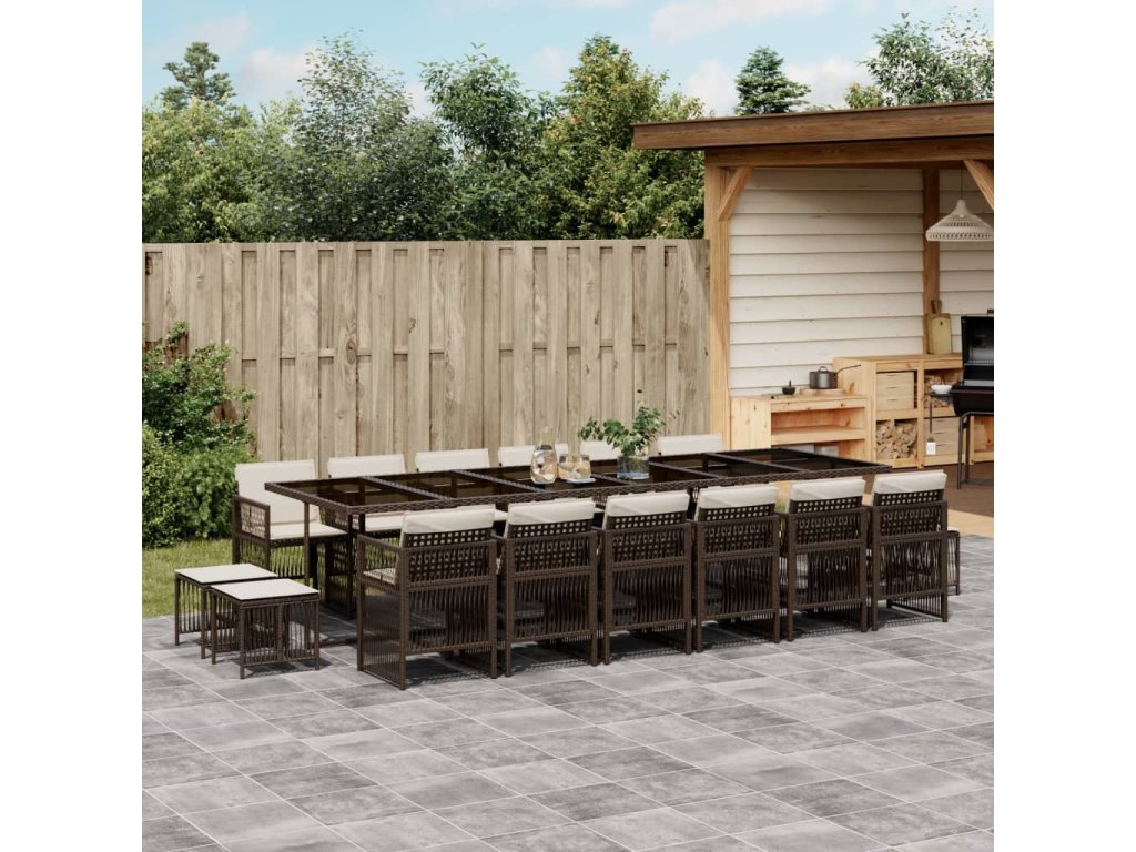 17dílný zahradní jídelní set s poduškami hnědý polyratan 3211005