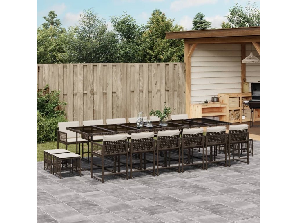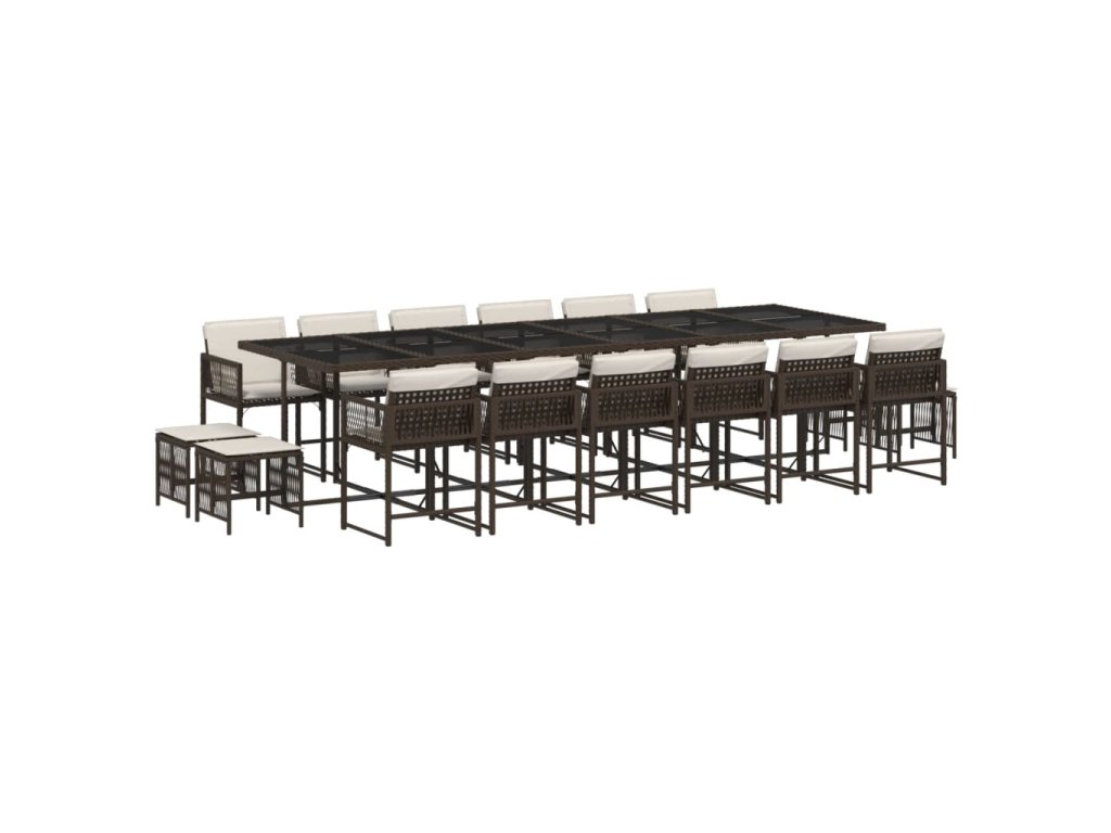 17dílný zahradní jídelní set s poduškami hnědý polyratan 3211545