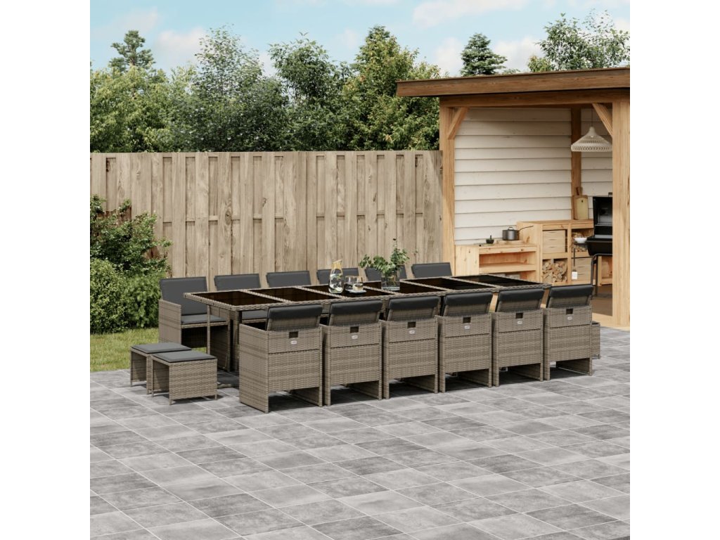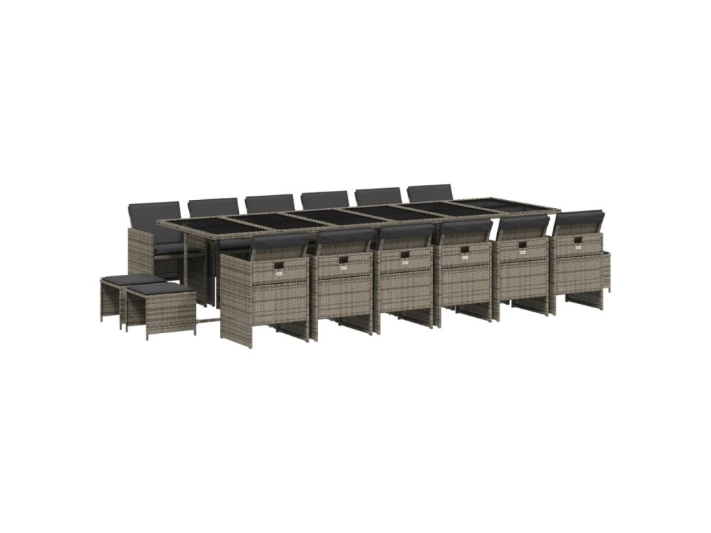 17dílný zahradní jídelní set s poduškami šedý polyratan 3210644