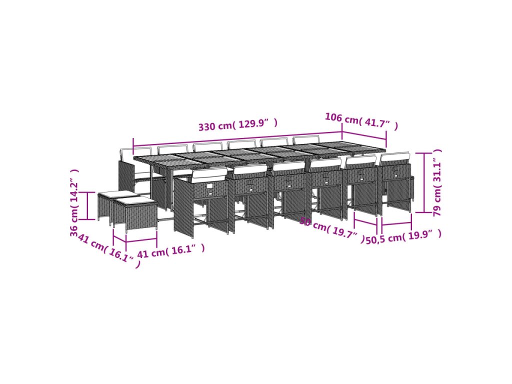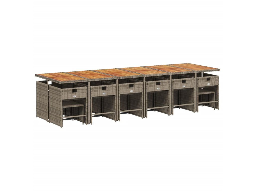 17dílný zahradní jídelní set s poduškami šedý polyratan 3211190