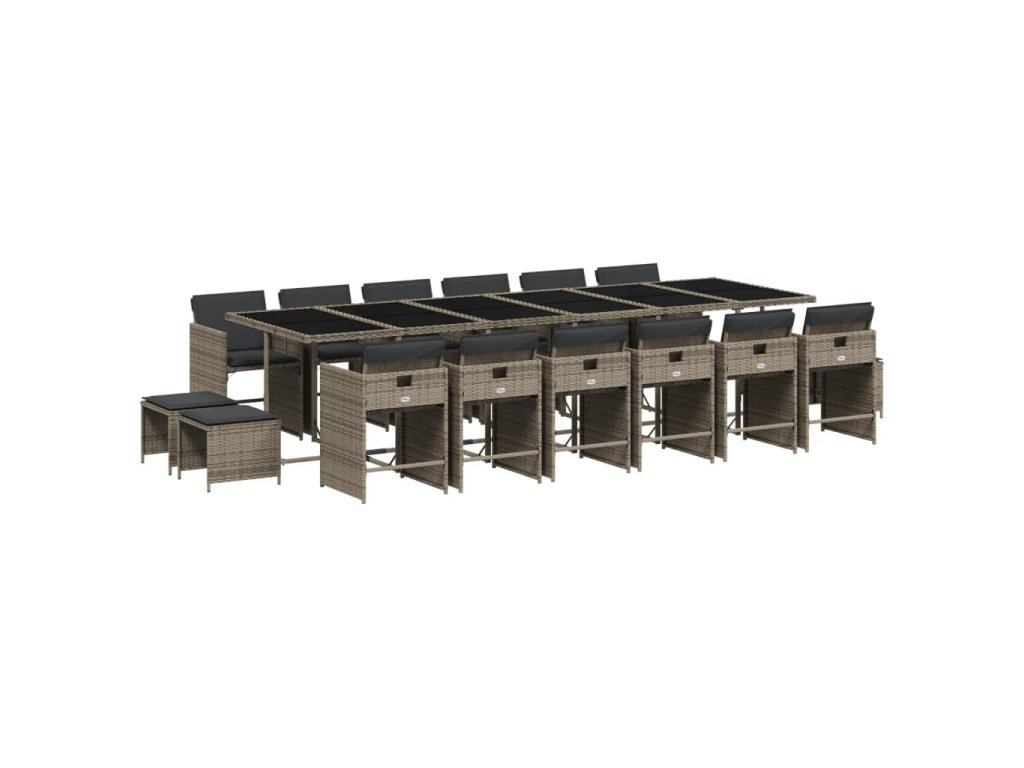 17dílný zahradní jídelní set s poduškami šedý polyratan 3277951