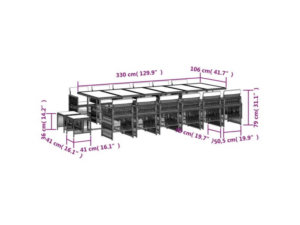 - Rozměry: 330 x 106 x 73 cm (D x Š x V)