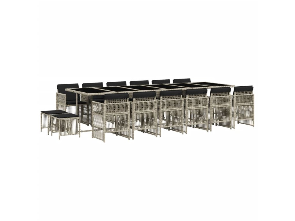 17dílný zahradní jídelní set s poduškami světle šedý polyratan 3211007