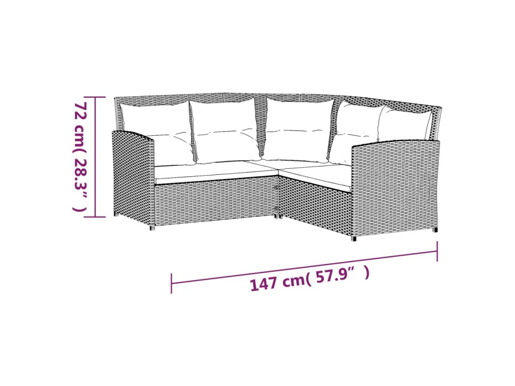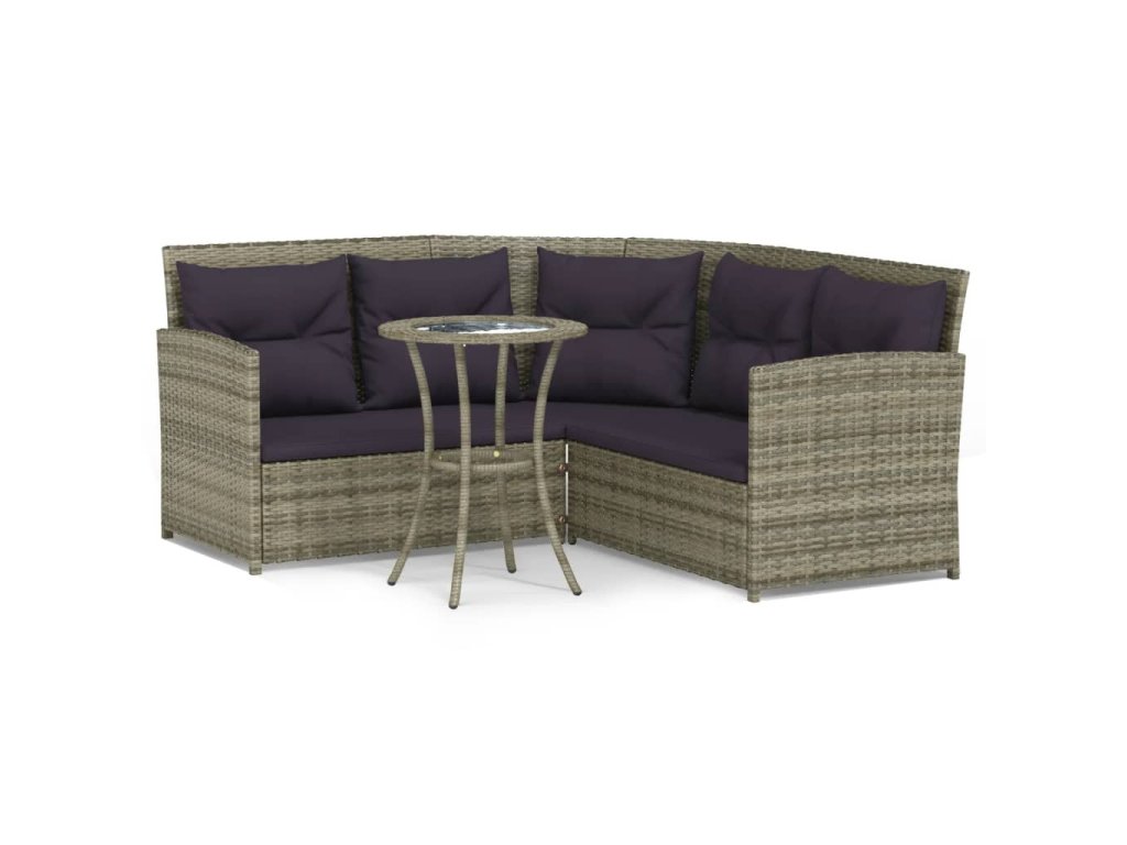 2dílná sedací souprava ve tvaru L s poduškami šedá polyratan 319658