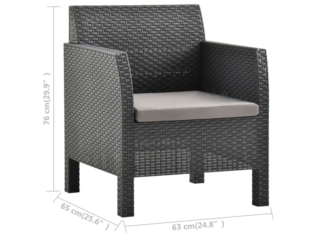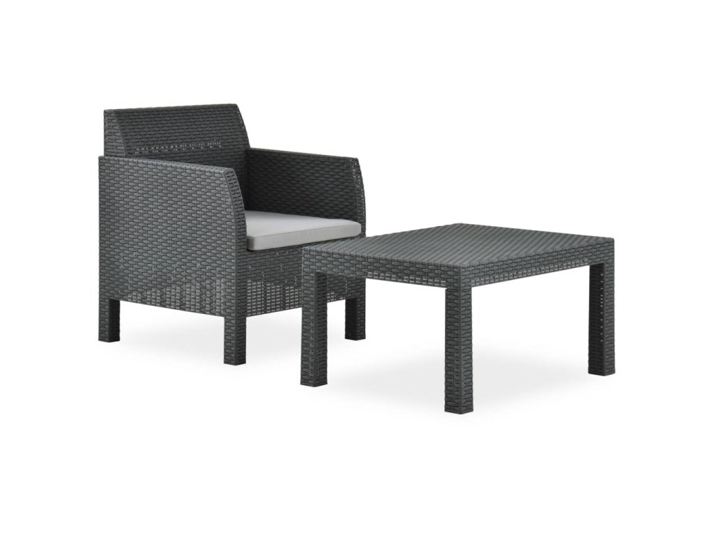 2dílná zahradní sedací souprava poduška PP ratan antracitová 315641