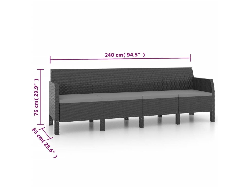 2dílná zahradní sedací souprava podušky PP ratan antracitová 3079670