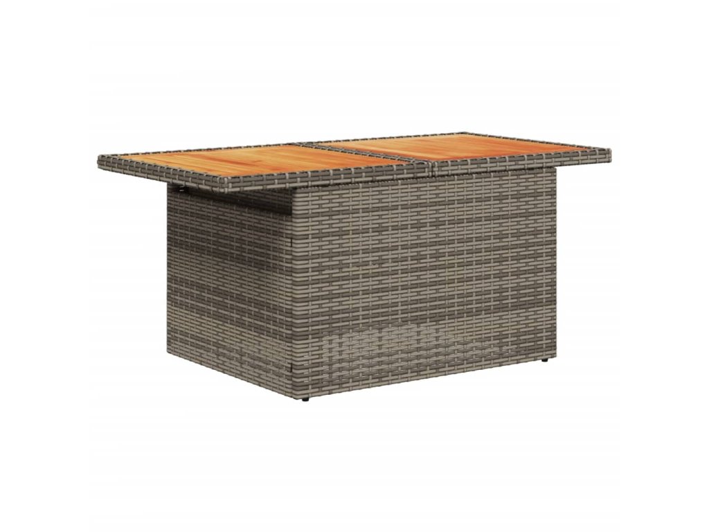 - Materiál: PE ratan, práškově lakovaná ocel, masivní akáciové dřevo s olejovou povrchovou úpravou