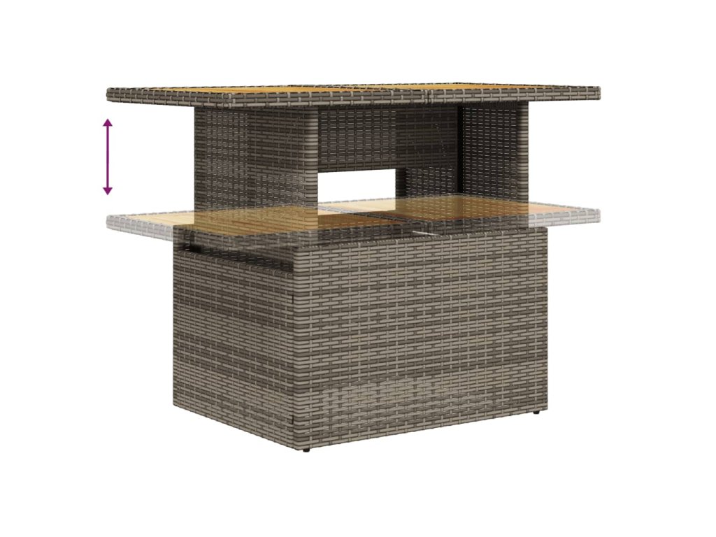 - Nastavitelná deska stolu: Stolní desku lze zvednout tak, aby stůl byl vyšší, takže jej můžete přeměnit z konferenčního stolku na jídelní. Skvěle se hodí pro návštěvy nebo pro stolování venku.