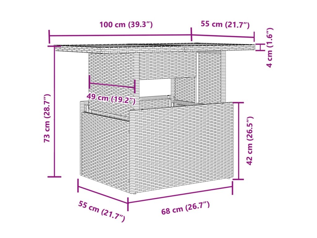 - Rozměry stolku: 100 x 55 x 44/73 cm (Š x H x V)