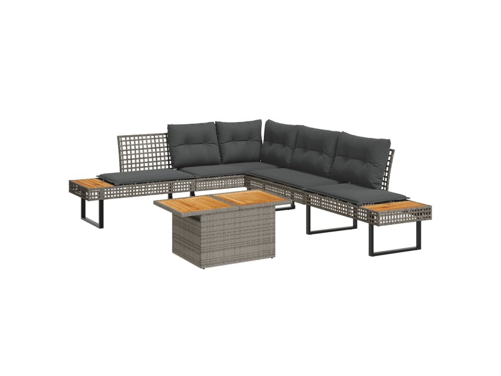 2dílná zahradní sedací souprava podušky šedá polyratan akácie 3277500