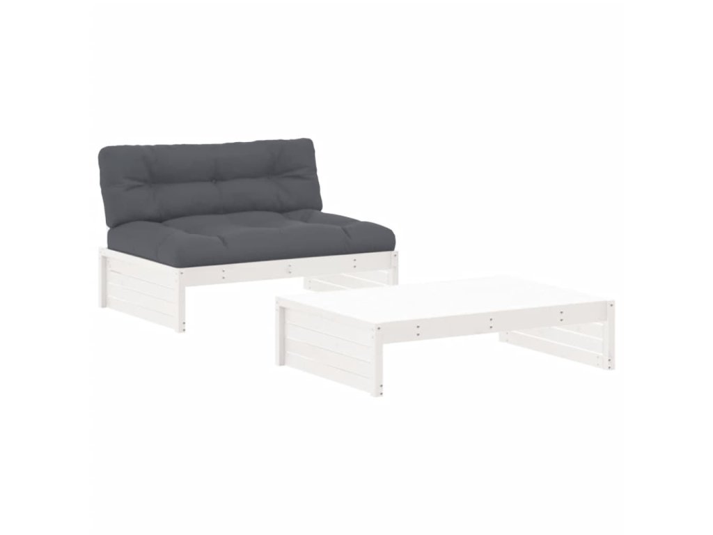 2dílná zahradní sedací souprava s poduškami bílá masivní dřevo 3186131