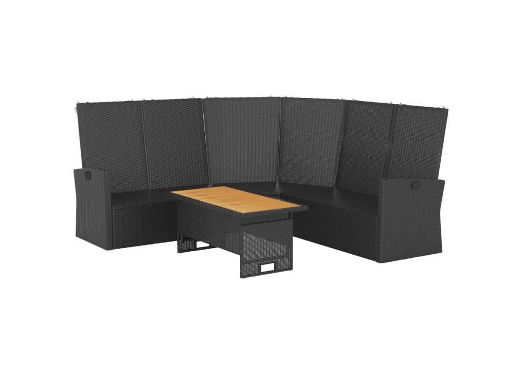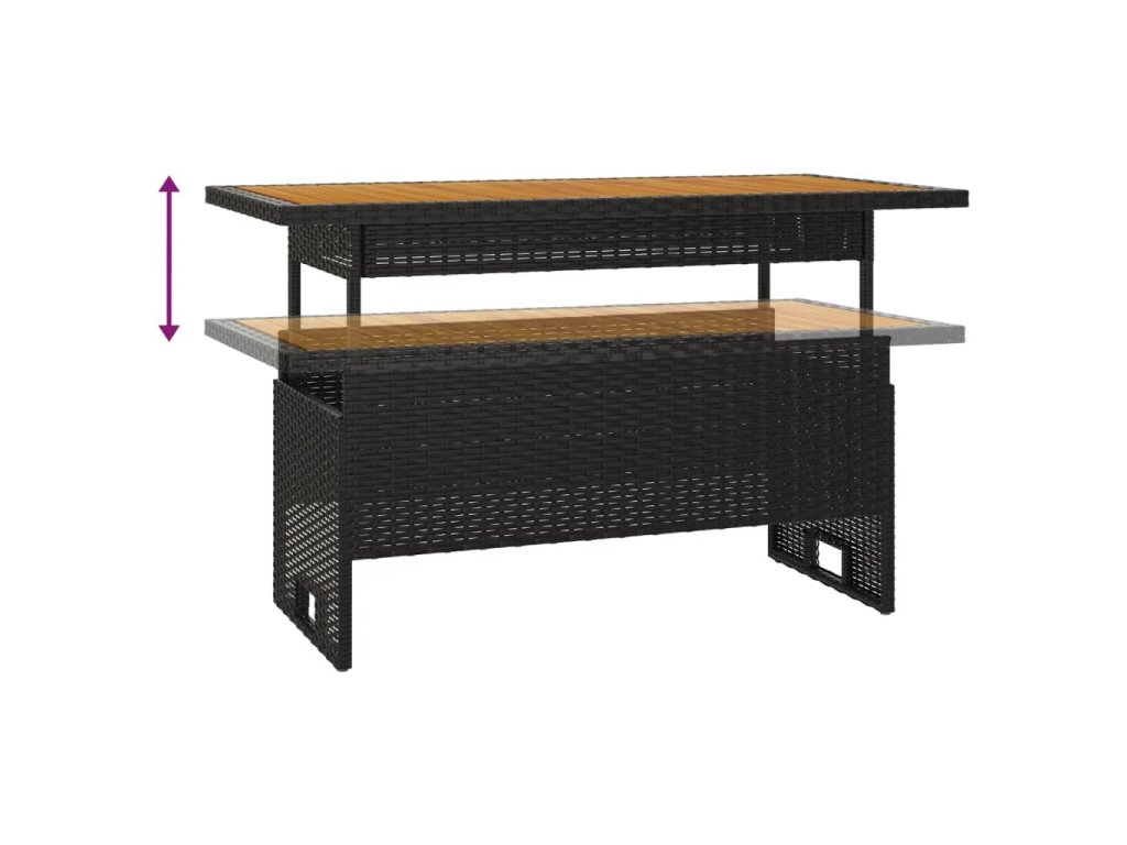 - Materiál: masivní akáciové dřevo s olejovou povrchovou úpravou, PE ratan, práškově lakovaná ocel