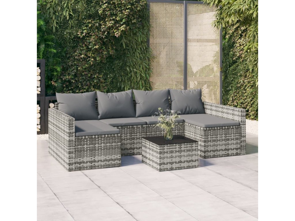 2dílná zahradní sedací souprava s poduškami šedá polyratan 362344