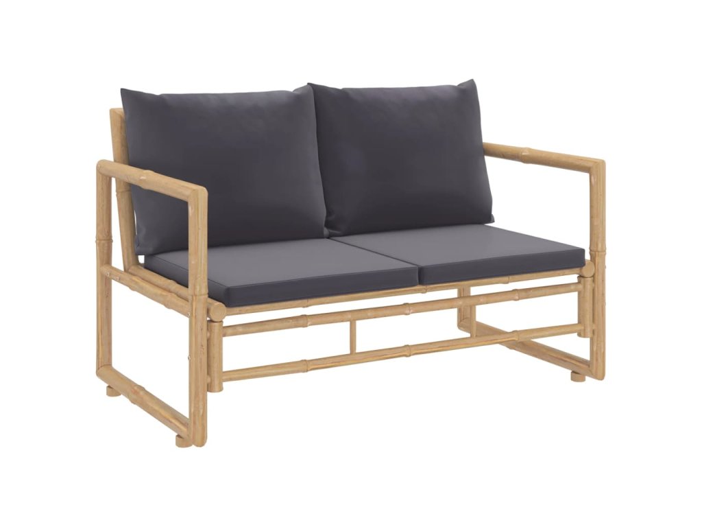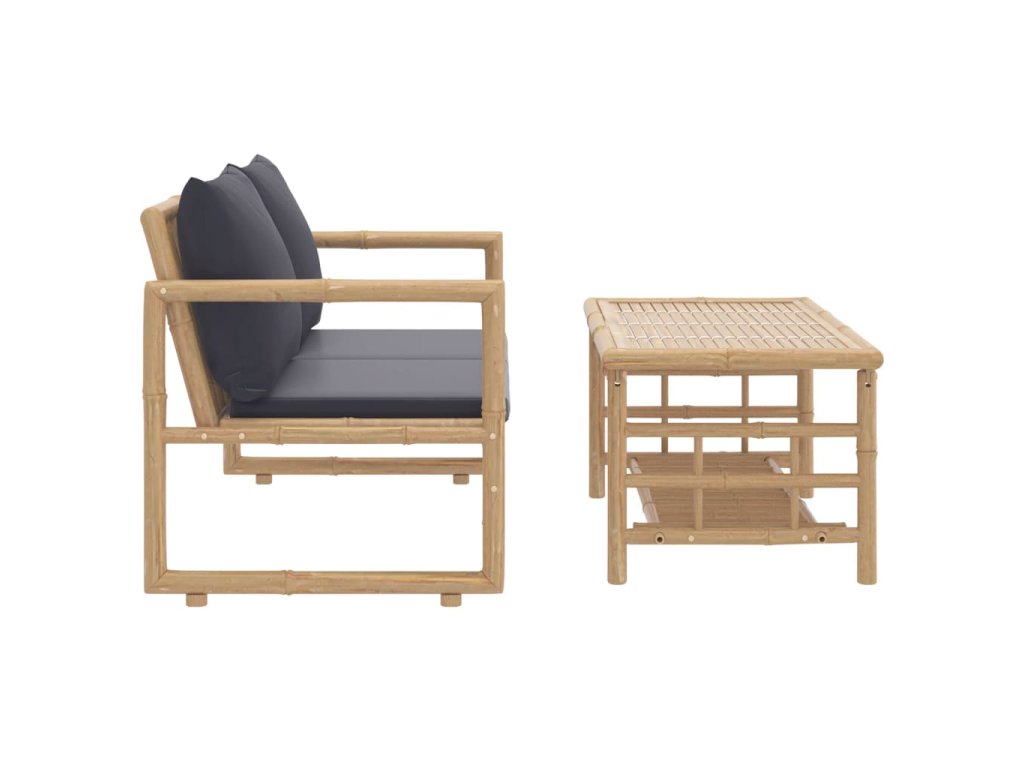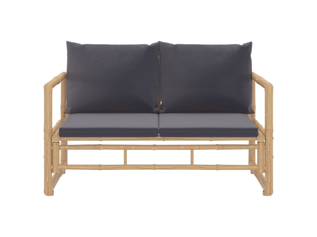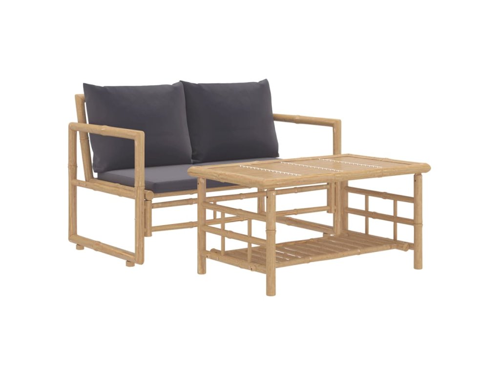 2dílná zahradní sedací souprava s tmavě šedými poduškami bambus 319266