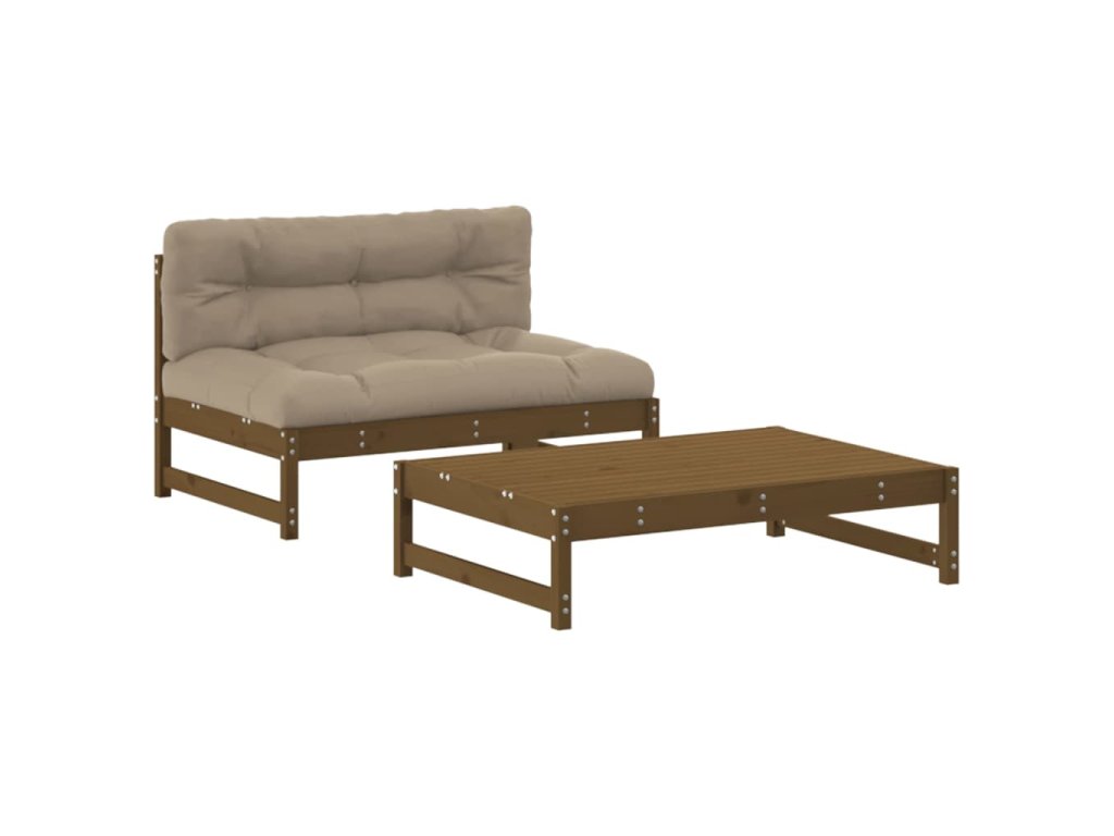 2dílná zahradní souprava s poduškami medově hnědá masivní dřevo 3186105
