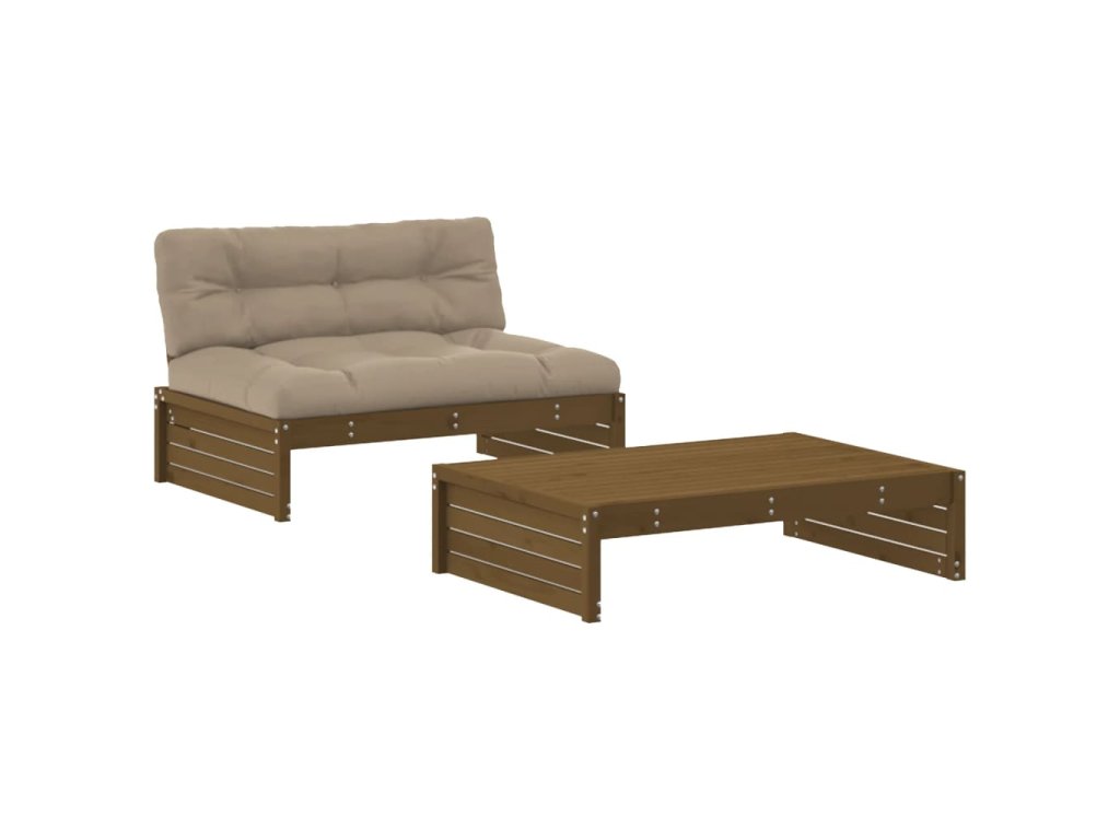 2dílná zahradní souprava s poduškami medově hnědá masivní dřevo 3186133