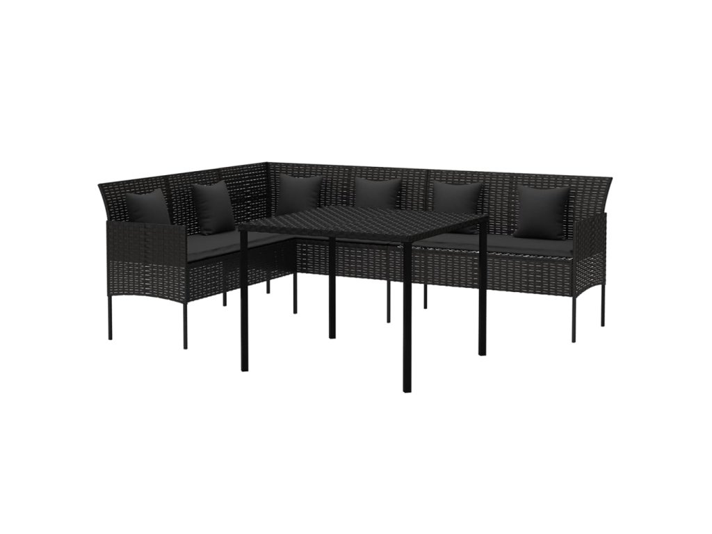 2dílný zahradní jídelní set s poduškami černý polyratan 362338