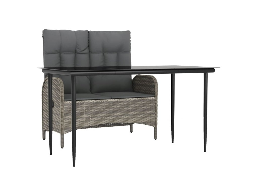 2dílný zahradní jídelní set s poduškami šedý polyratan 3203501