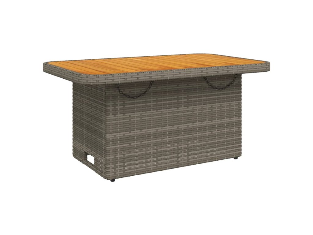 - Materiál: PE ratan, práškově lakovaná ocel, masivní akáciové dřevo s olejovou povrchovou úpravou