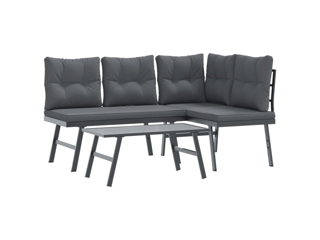 3dílná sada s lavicemi s poduškami černá práškově lakovaná ocel 3283711