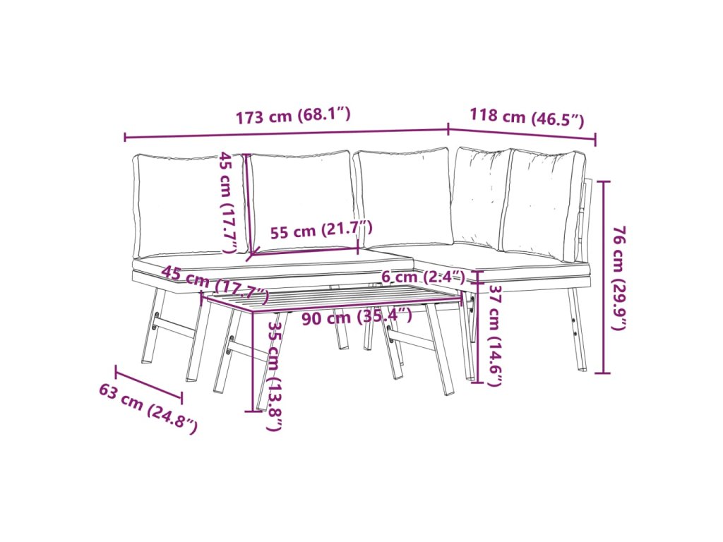 - Rozměry (lavice se 3 opěradly): 118 x 63 x 76 cm (Š x H x V)