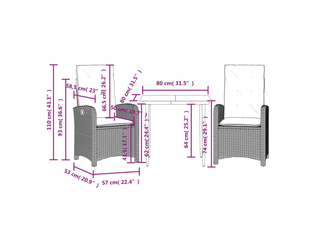 - Rozměry při poloze vsedě: 57 x 58,5 x 93 cm (Š x H x V)