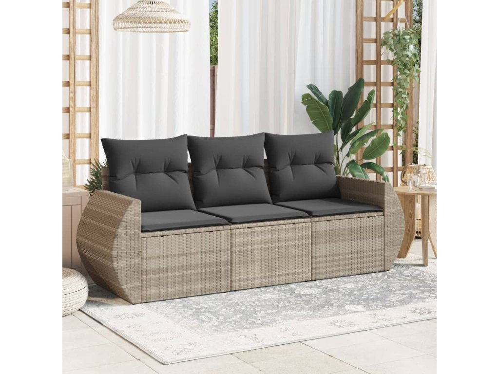 3dílná zahradní sedací souprava a podušky světle šedá polyratan 3221061