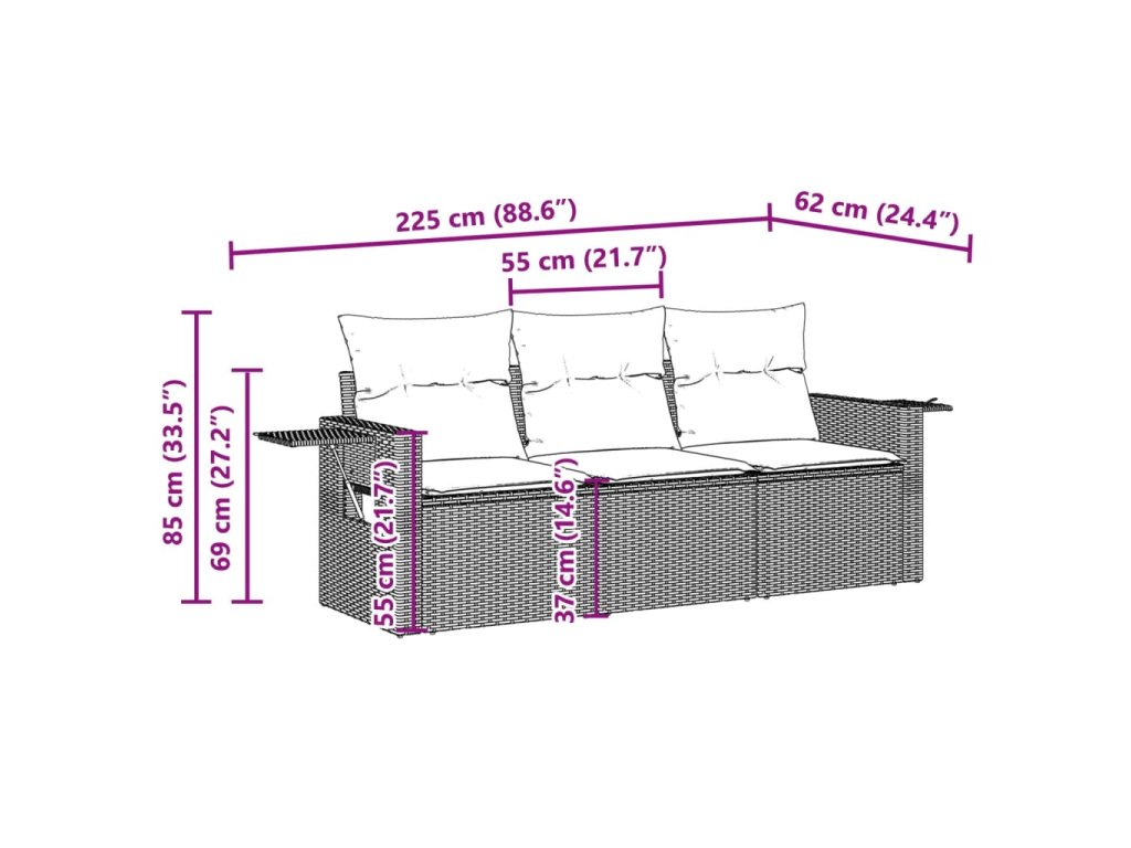 Tato zahradní sedací souprava je dokonalým doplňkem vaší zahrady, terasy nebo dvorku a poskytne vám pohodlné a příjemné místo, kde si můžete povídat s rodinou a přáteli nebo jen tak odpočívat a užívat si pobyt venku.
