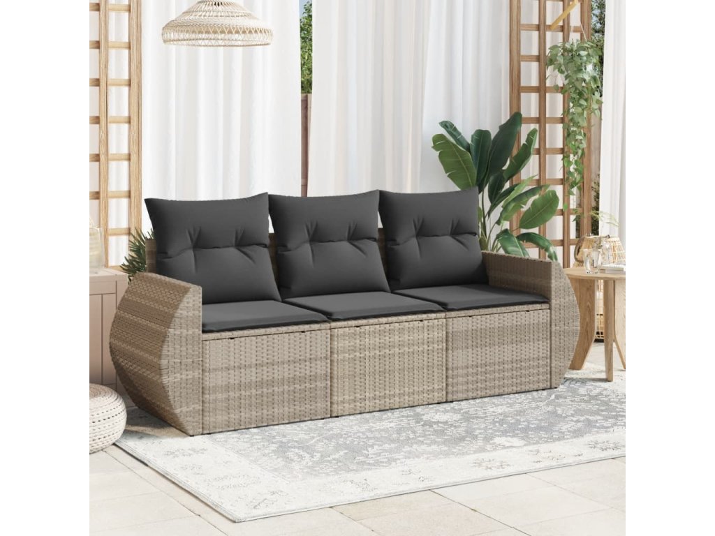 3dílná zahradní sedací souprava a podušky světle šedá polyratan 3253399