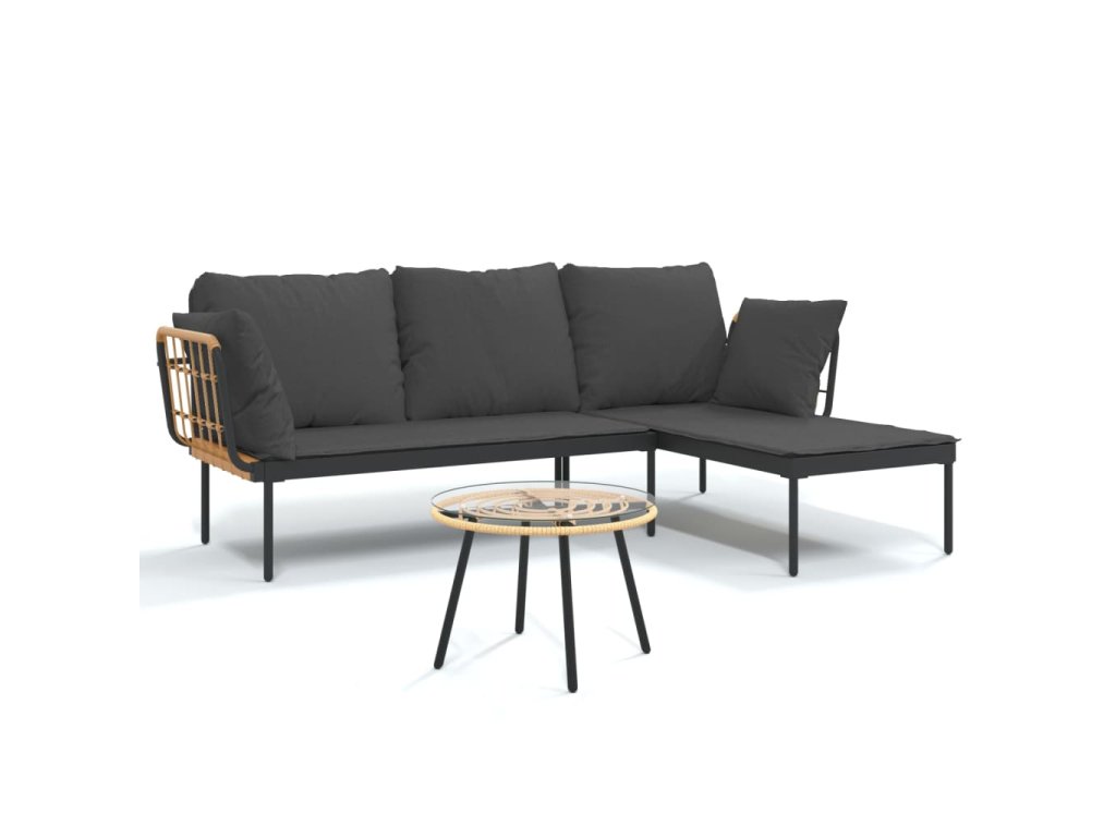 3dílná zahradní sedací souprava a tmavě šedé podušky polyratan 364109