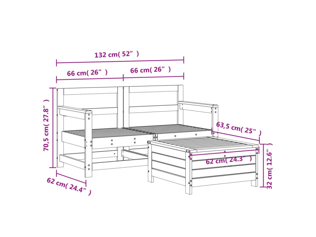 3dílná zahradní sedací souprava bílá masivní borové dřevo 3250761