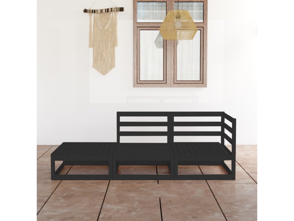 3dílná zahradní sedací souprava černá masivní borovice 3075473