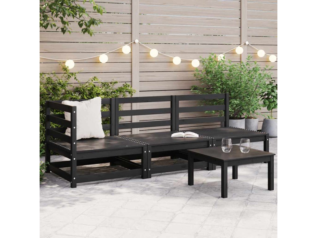 3dílná zahradní sedací souprava černá masivní borovice 805709