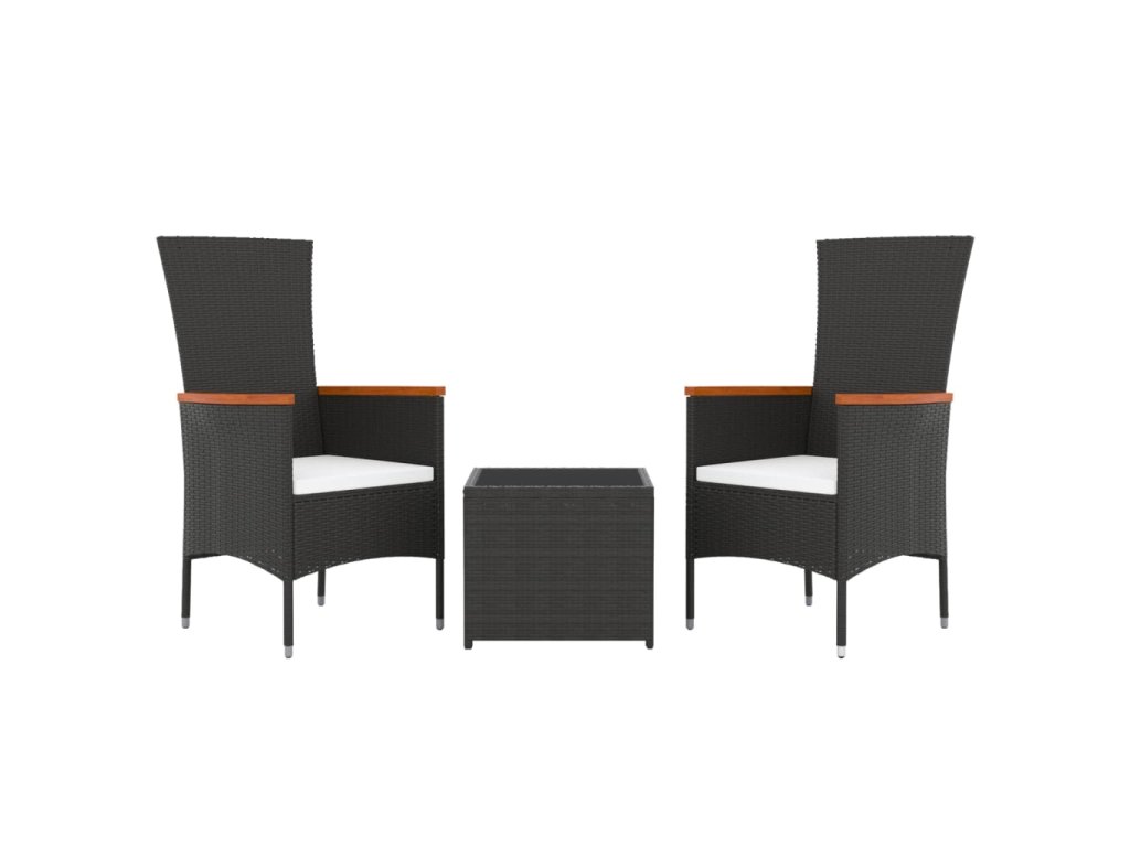3dílná zahradní sedací souprava černá polyratan a ocel 3157658