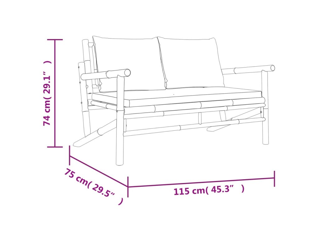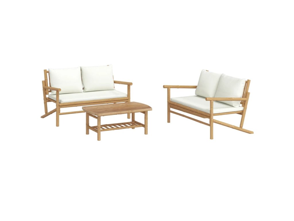 3dílná zahradní sedací souprava krémově bílé podušky bambus 3156473