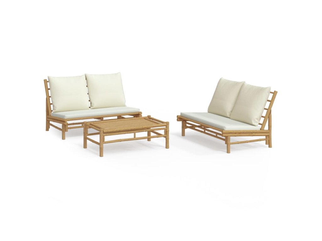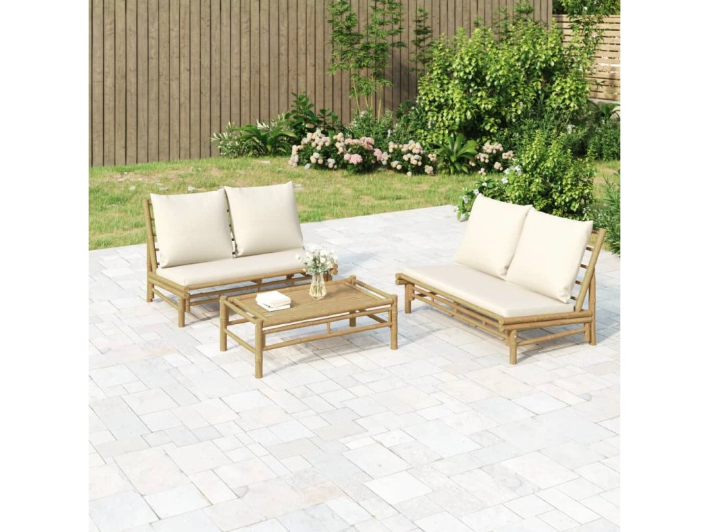 3dílná zahradní sedací souprava krémově bílé podušky bambus 3156483