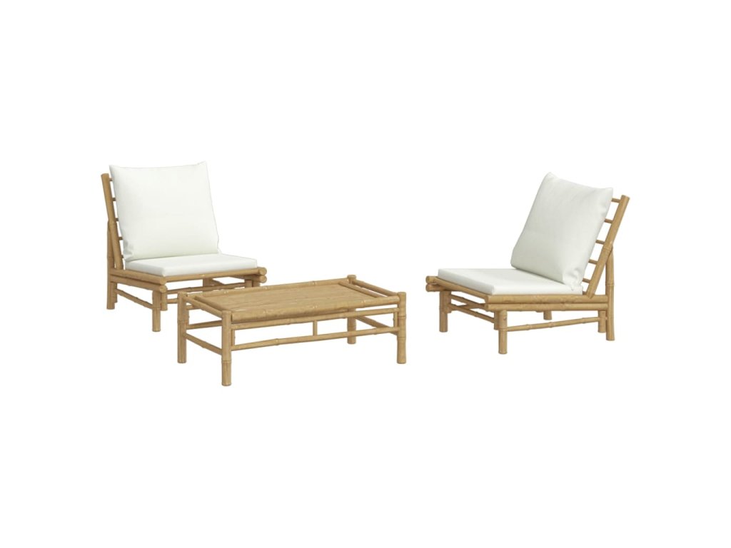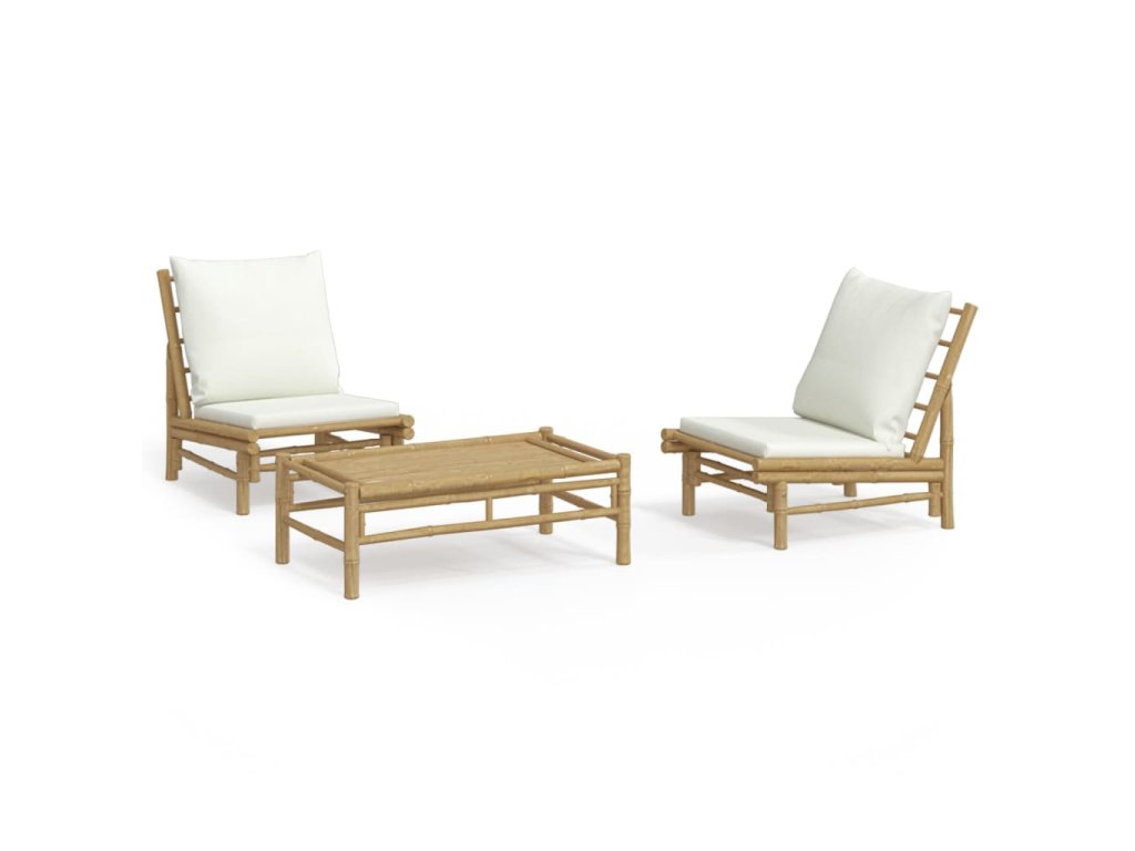 3dílná zahradní sedací souprava krémově bílé podušky bambus 3156489