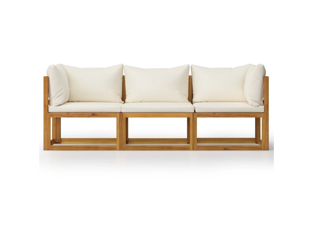 3dílná zahradní sedací souprava krémové podušky masivní akácie 3057638
