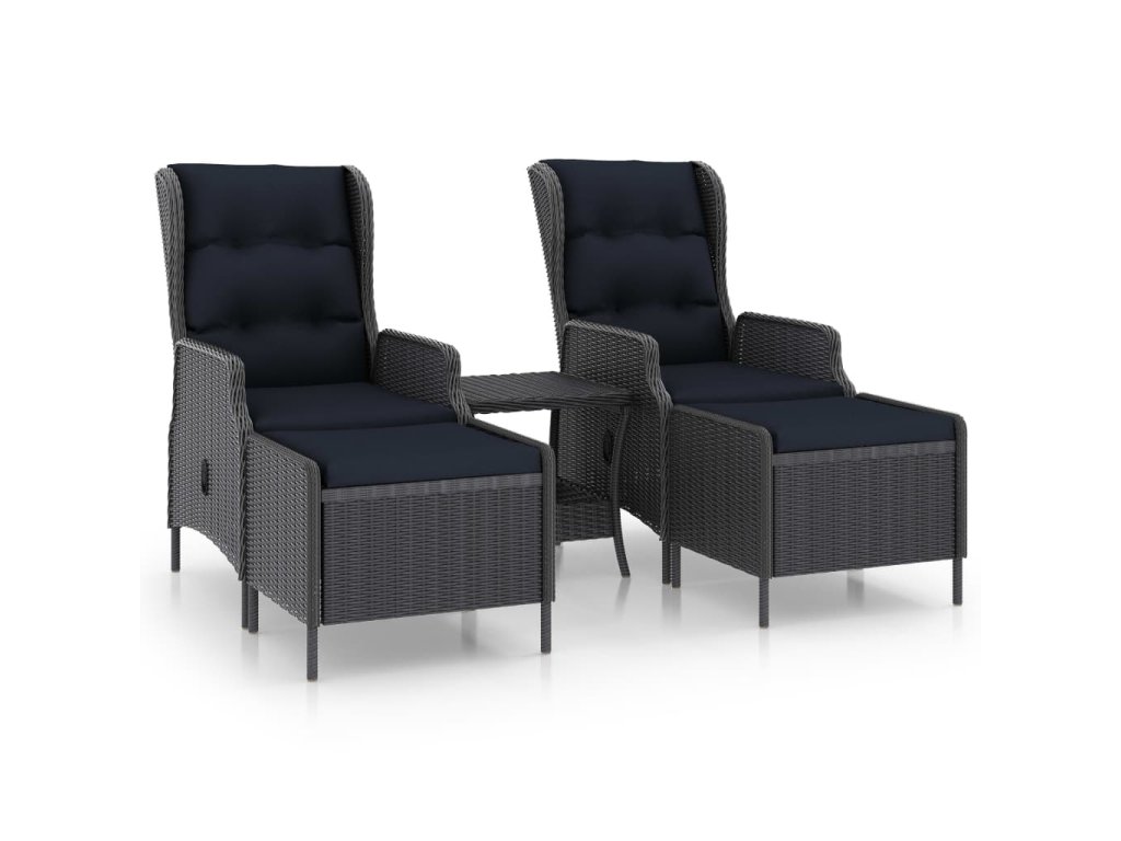 Zahradní polohovací křesla i čajový stolek mají rám z práškově lakované oceli opletený kulatým PE ratanem, takže jsou odolné a snadno se čistí. Hustě polstrované podušky vám při odpočinku zajistí zvýšené pohodlí. Jejich potahy jsou opatřené zipy, aby se daly sejmout a oprat. Mechanismus s plynovým pístem vám umožňuje sklopit opěradlo do preferované pozice. Stiskem bočního tlačítka ho můžete nastavit až do příjemné polohy vleže. Židle je jako stvořená pro relaxaci, zvlášť když si položíte nohy na ladící podnožku. Navíc si ji můžete postavit, kam se vám zlíbí. Robustní stolní deska vám skvěle poslouží k odkládání či vystavování nejrůznějších věcí. Sedací souprava má lehkou konstrukci, lze ji tedy bez námahy přesouvat z místa na místo.