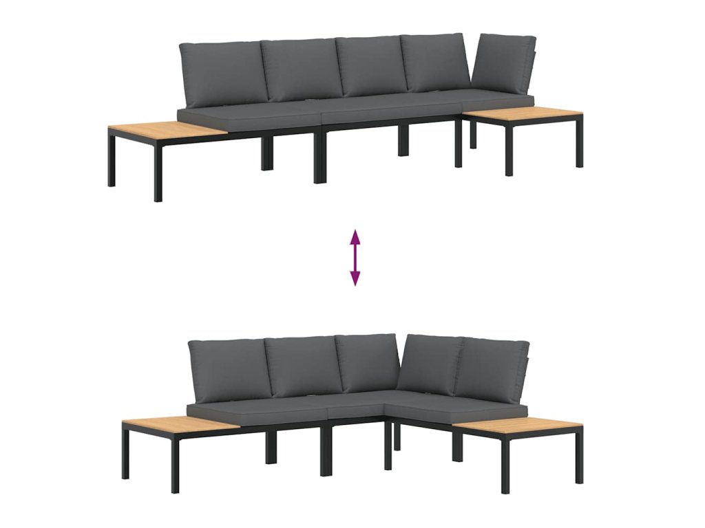 - Modulární design: Tato sada venkovního nábytku se vyznačuje modulární konstrukcí, je tedy zcela flexibilní a lze ji snadno přemisťovat, takže si můžete uspořádat venkovní nábytek dle vašich potřeb.