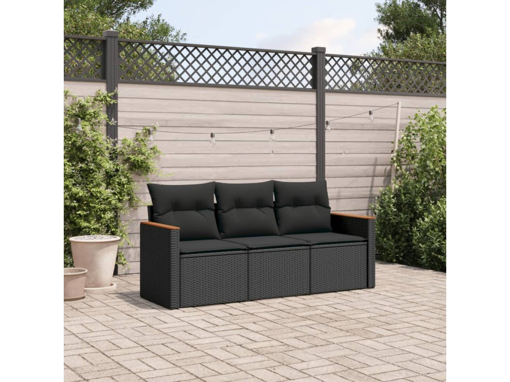 3dílná zahradní sedací souprava s poduškami černá polyratan 3225754