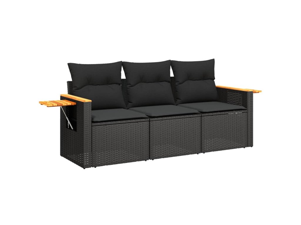 3dílná zahradní sedací souprava s poduškami černá polyratan 3226594