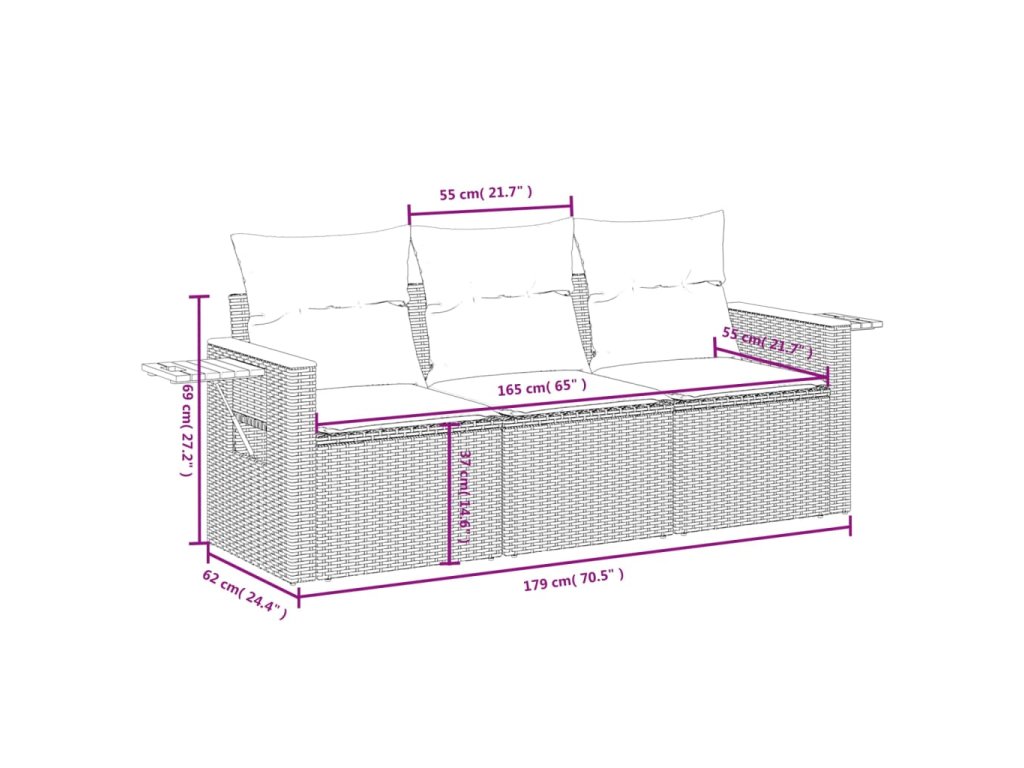 Tato zahradní sedací souprava je dokonalým doplňkem vaší zahrady, terasy nebo dvorku a poskytne vám pohodlné a příjemné místo, kde si můžete povídat s rodinou a přáteli nebo jen tak odpočívat a užívat si pobyt venku.
