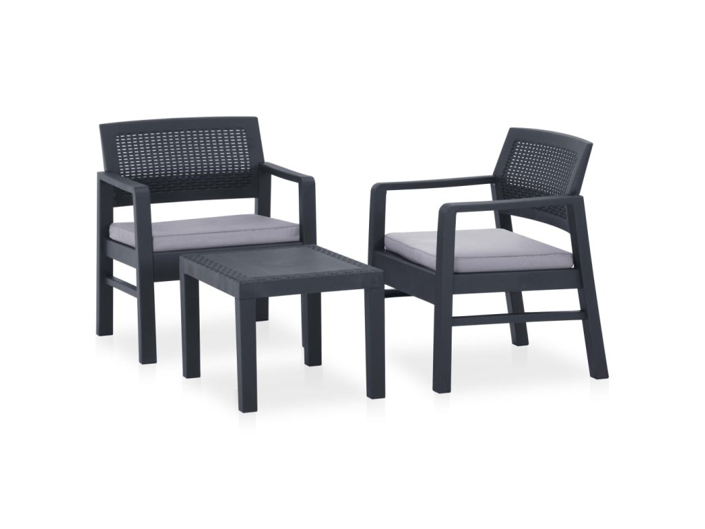 3dílná zahradní sedací souprava s poduškami plast šedá 315855