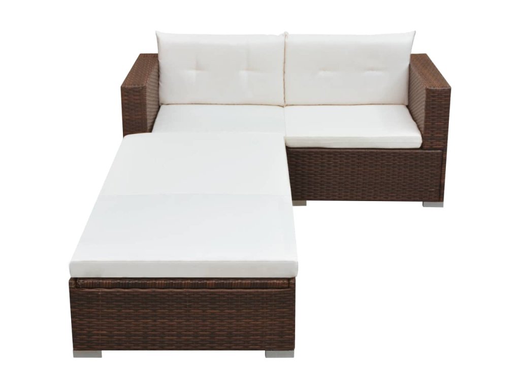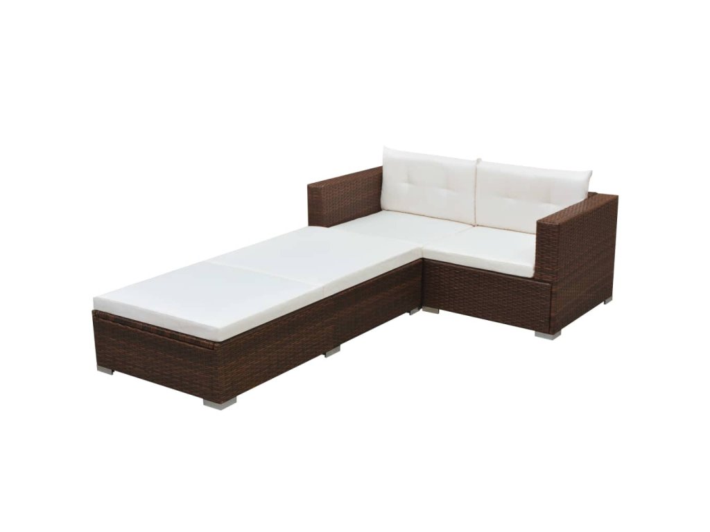3dílná zahradní sedací souprava s poduškami polyratan hnědá 42747