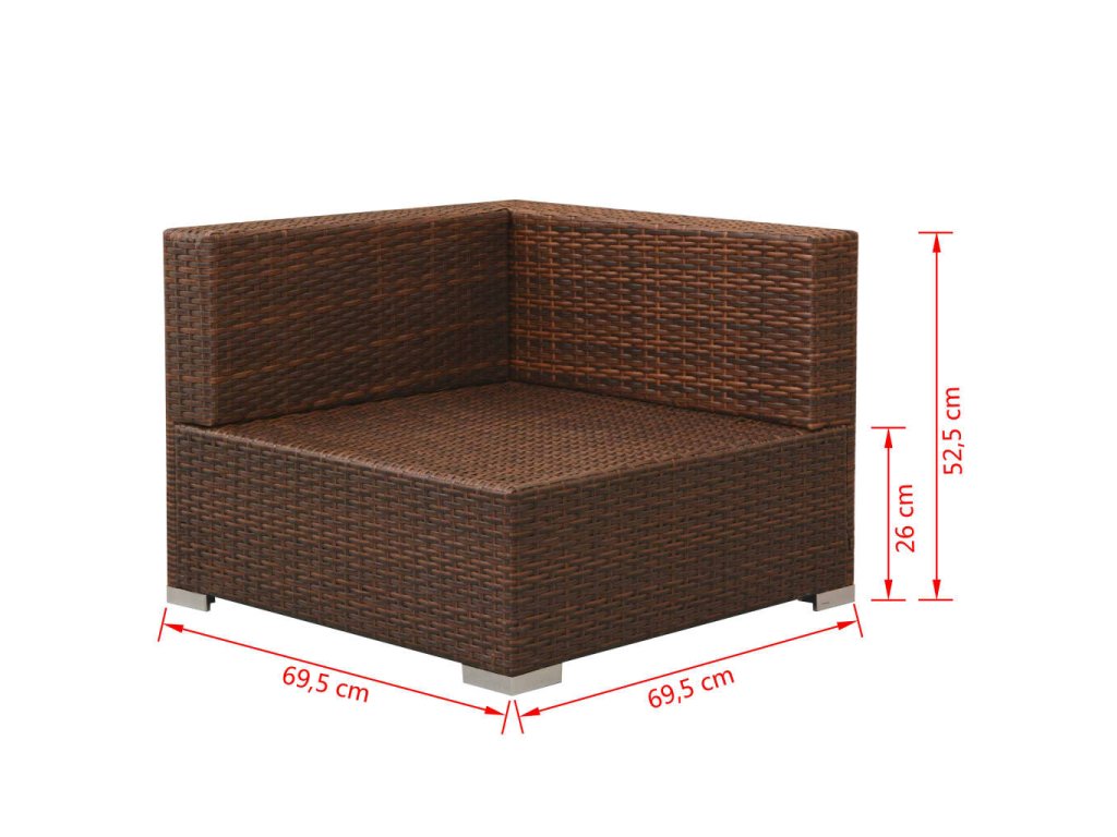- Rozměry rohové pohovky: 69,5 x 69,5 x 52,5 cm (Š x H x V)