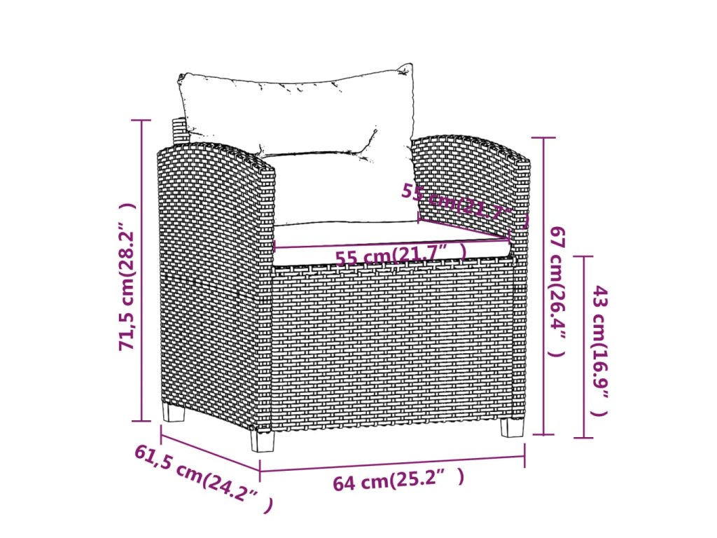 - Rozměry křesla: 64 x 61,5 x 71,5 cm (Š x H x V)
