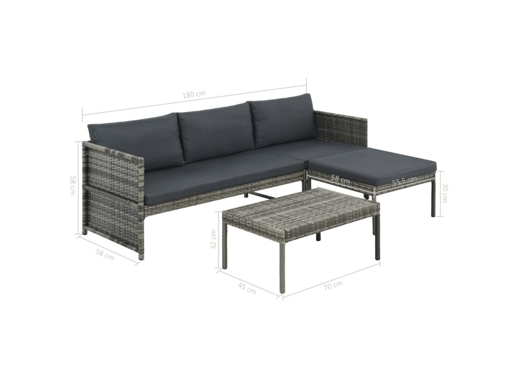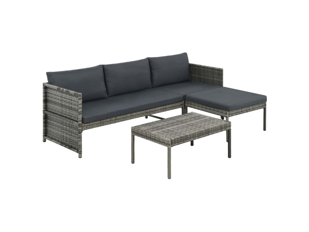 3dílná zahradní sedací souprava s poduškami polyratan šedá 313135