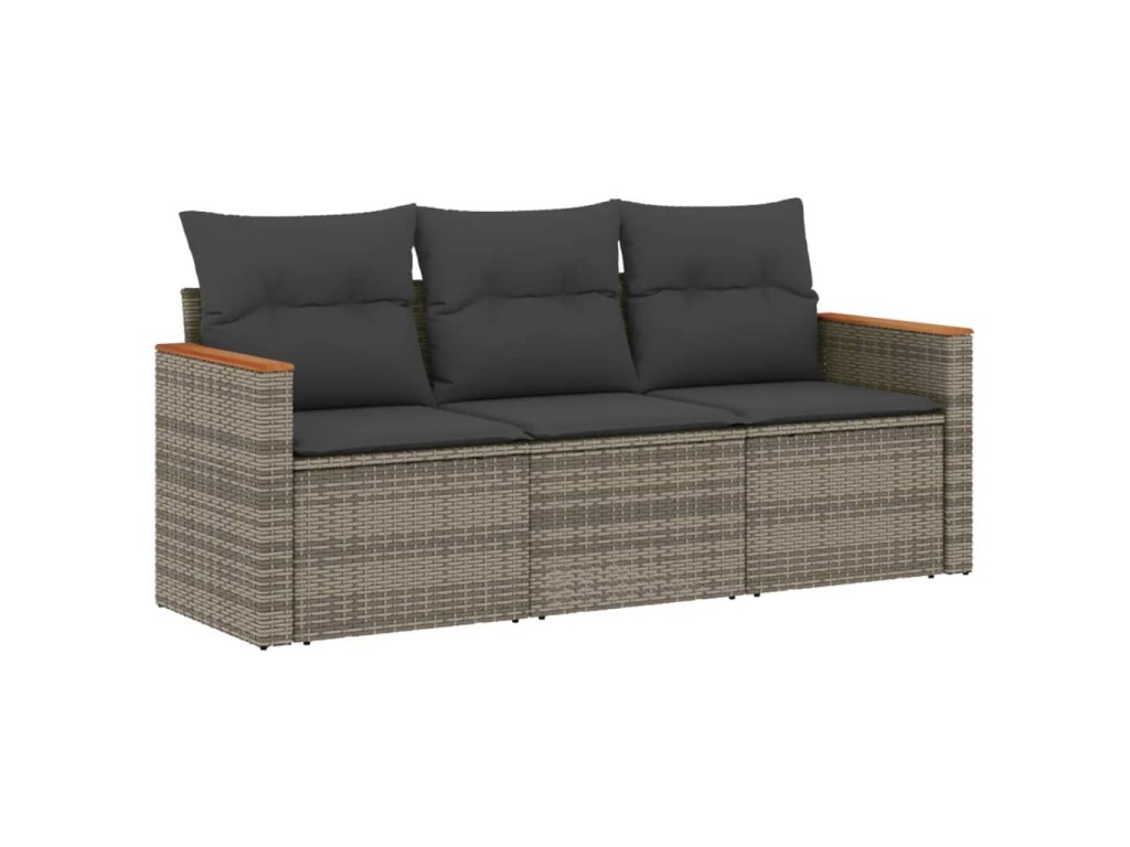 3dílná zahradní sedací souprava s poduškami šedá polyratan 3225759